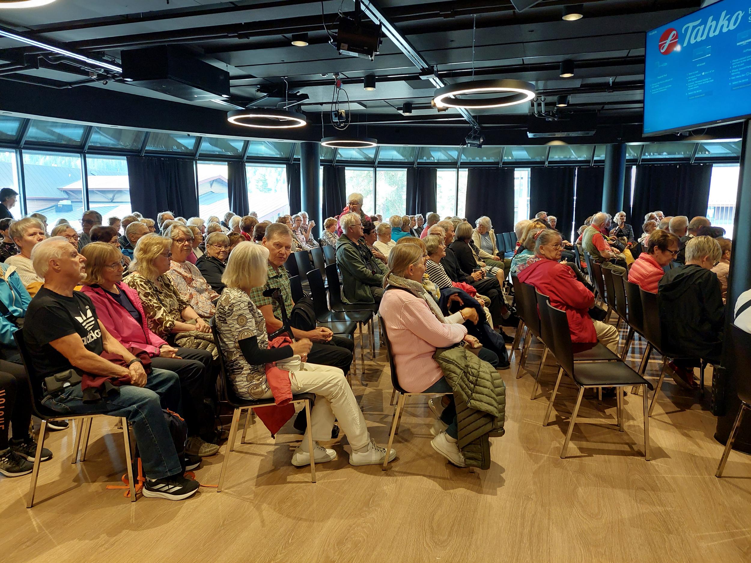 Päivän ohjelma tarjosi sekä ajatuksia herättäviä että hauskoja hetkiä. Leena Rosenbergin luento ”Vaikuta itse – elämäsi eläkkeellä” innosti kuulijoita pohtimaan, miten jokainen voi rakentaa omannäköiset eläkevuotensa. Luennon viesti muistutti meitä siitä, että parhaat hetket toteuttaa omat haaveensa ovat juuri tässä ja nyt.
