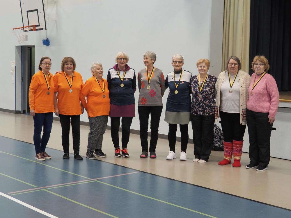 Naisten sarjassa kultamitalit matkasivat Lapinlahden Eläkkeensaajille, hopeaa otti KVES:n joukkue ja pronssille sijoittui Pielaveden Eläkkeensaajat.